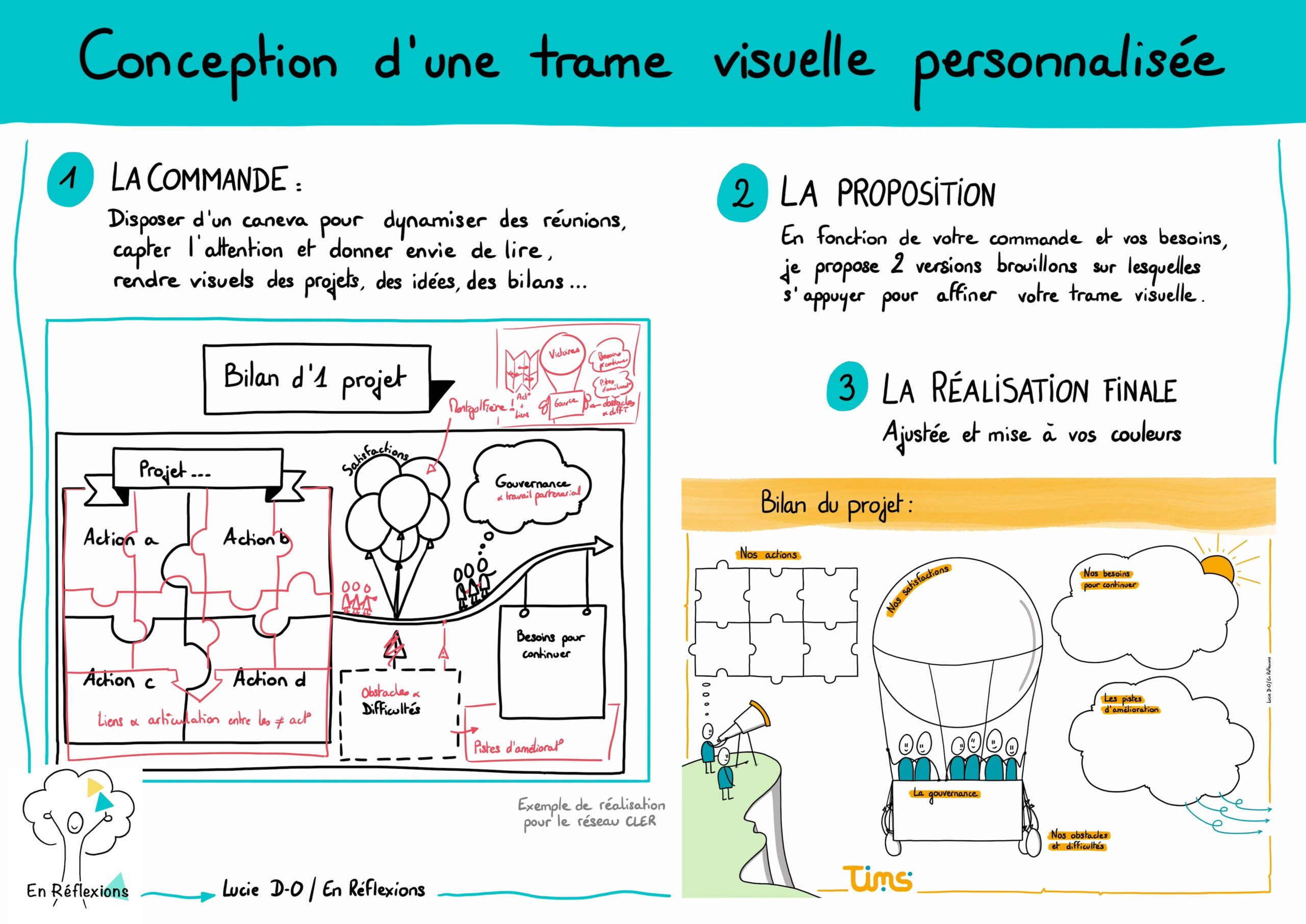 Je les dessine avec les outils de la facilitation graphique. Et j’aime tout particulièrement cela !